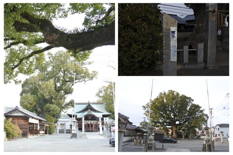 境内には数本のクスの巨木。指定樹は、本殿向かって右側。他に入口付近にも十分天然記念物としてもOKな巨木が。境内をお掃除している方々がいて、失礼しました。